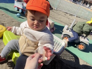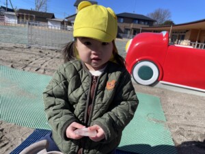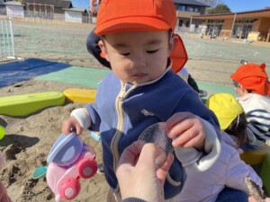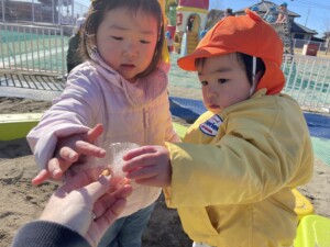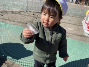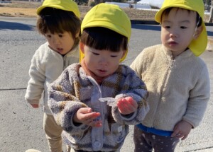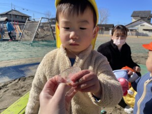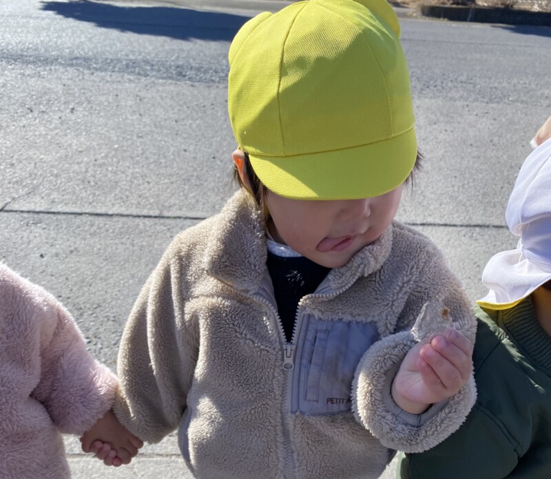 学習センターまで散歩に行った際にも、水たまりが凍っているのを発見して、みんなで氷を触りました。