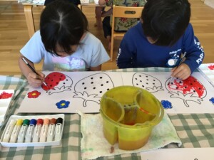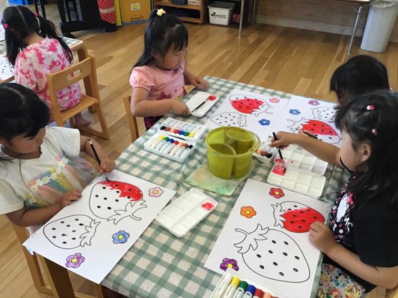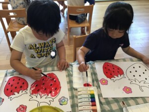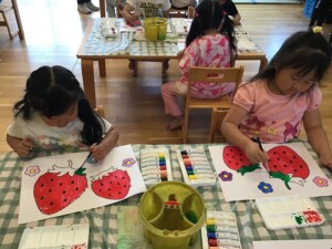 みんな、とっても真剣な目をしていますね👀「はみ出ないように・・・」と心で言いながら丁寧に塗ることが出来ましたね👏