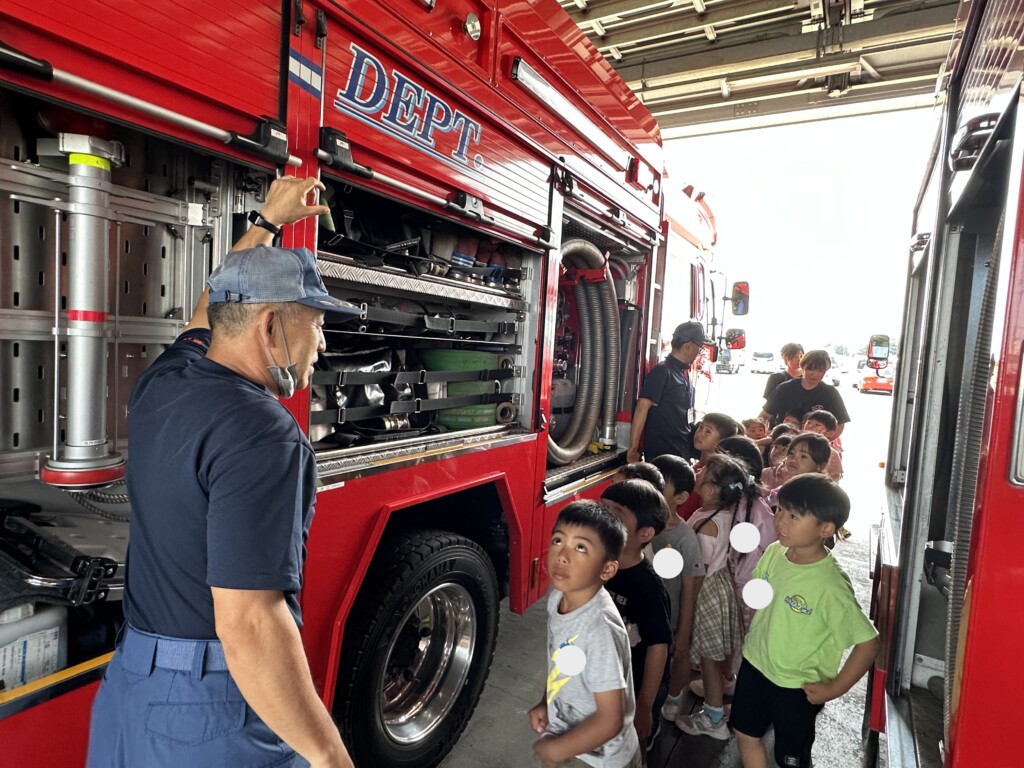 最後は、消防車の中や仕組みや訓練の様子を見学しましたよ!みんな真剣な目をしていました👀✨