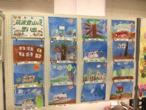 作品展に向けて、みんなで制作をしました。個人作品では「筑波山登山」の絵を描きました。一番思い出に残っているものをテーマに「やっぱりロープウェーが一番楽しかった!」「大きい木(紫峰杉)を描くんだ」とどの子も真剣に描き進めていました。