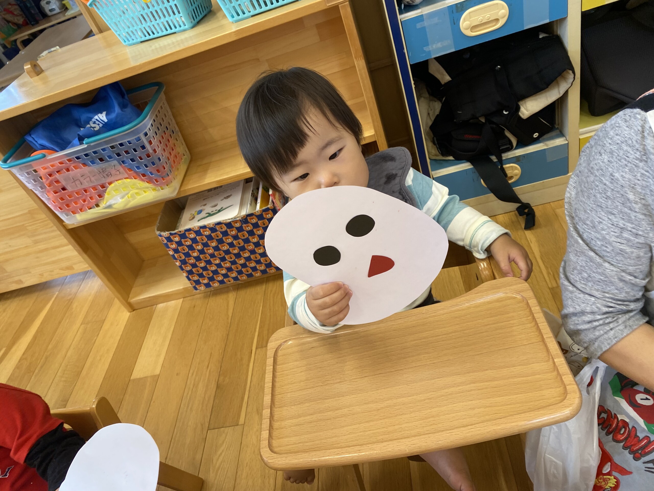 保育者と一緒に目や口をペタペタと上手に貼ることができ、可愛らしいおばけができました😊💕