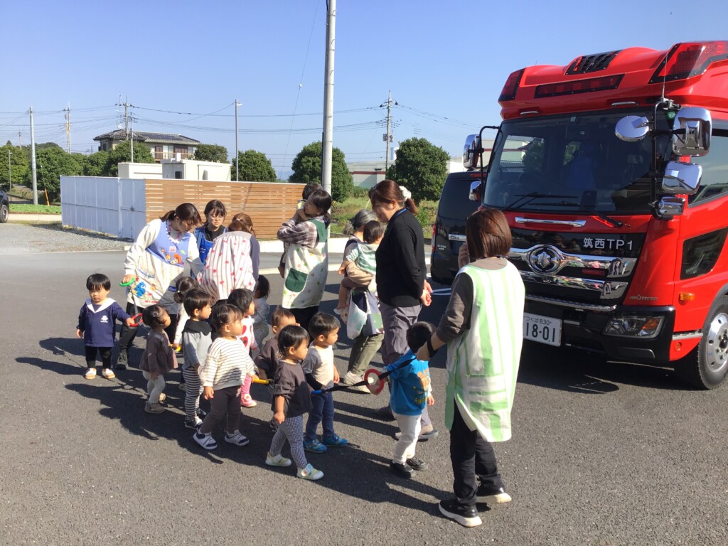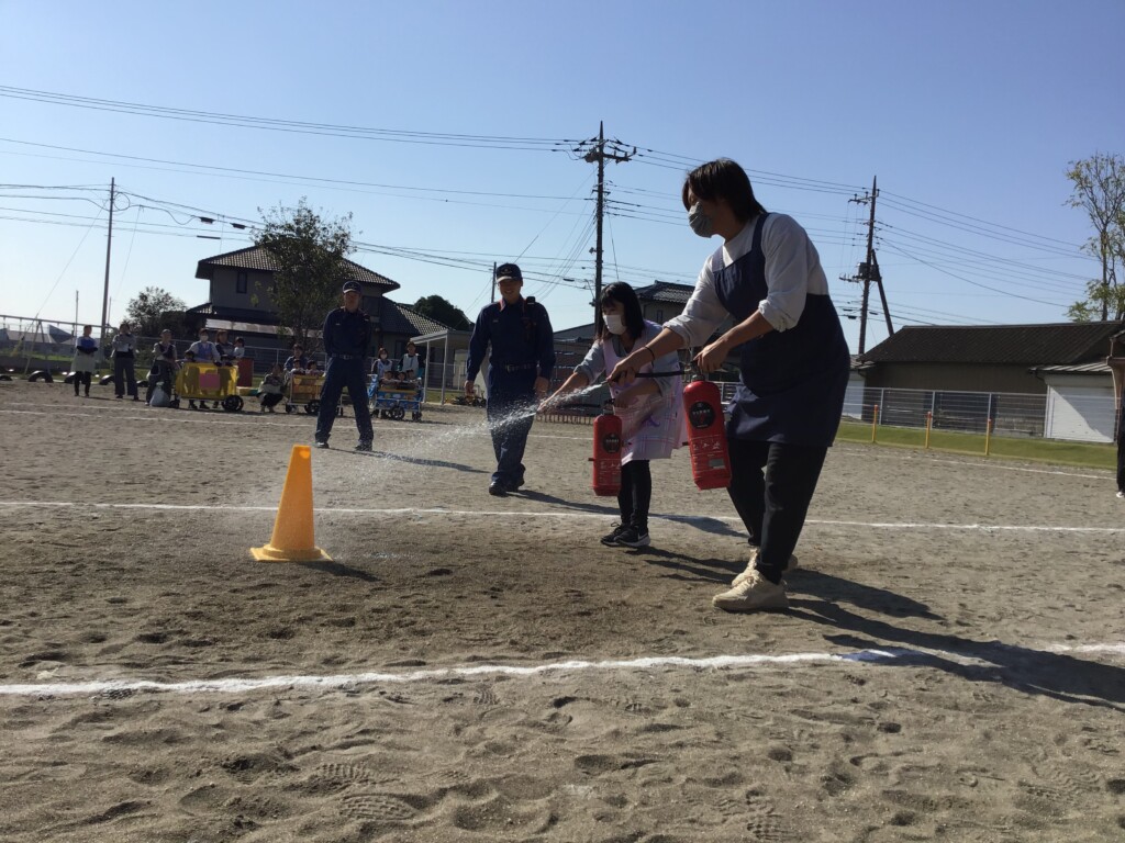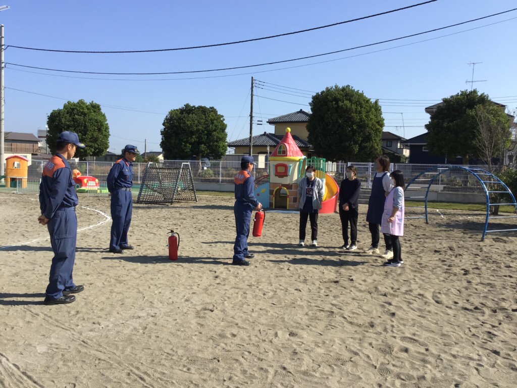 その後、消防士さんに指導して頂き、消火器の使い方を再確認しました。火元より手前からほうきで掃くような感じでかけると良いと教えて頂きました。子ども達からは「がんばれ~」と可愛い応援の声が聞こえてきましたよ🎵
