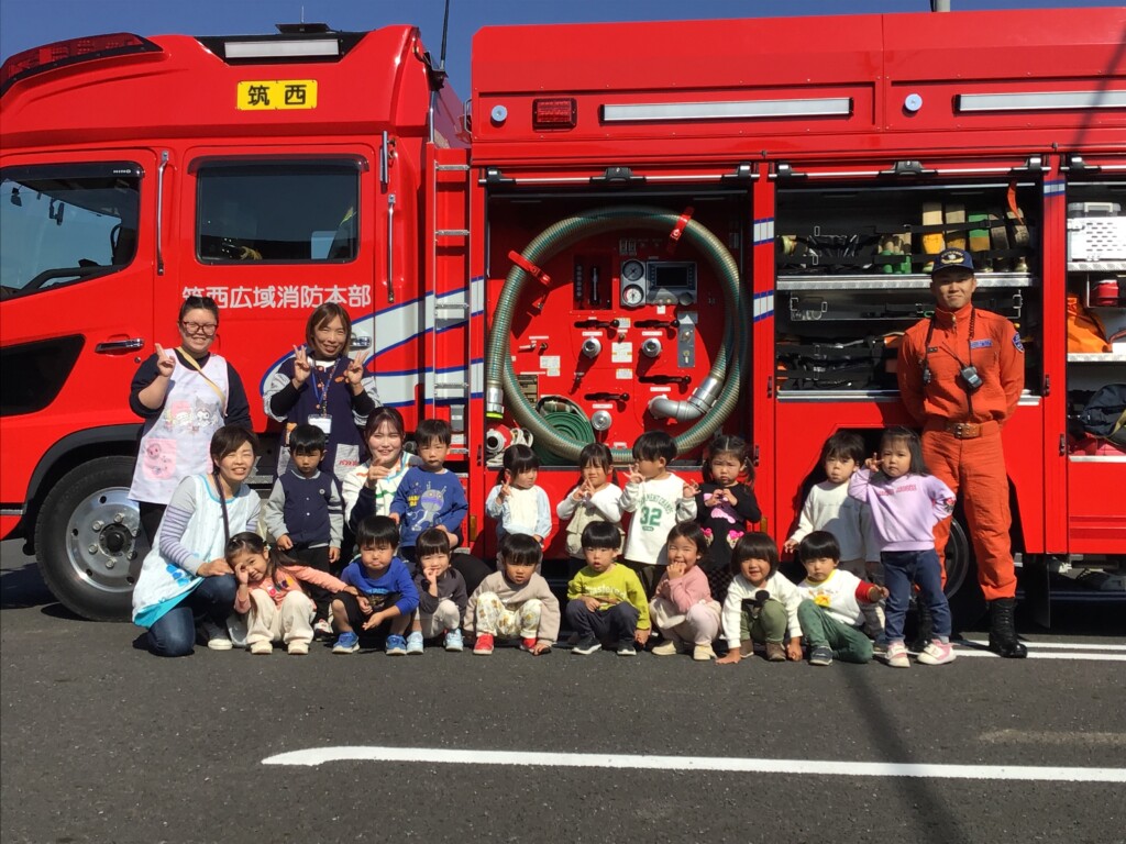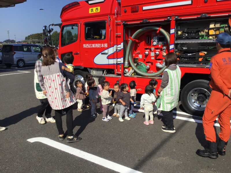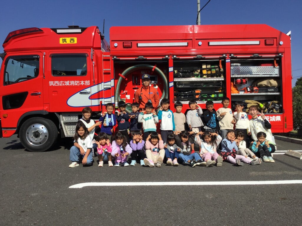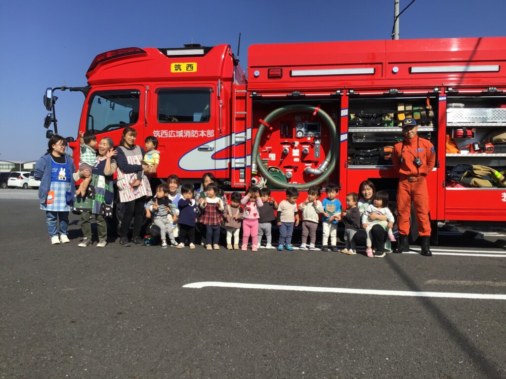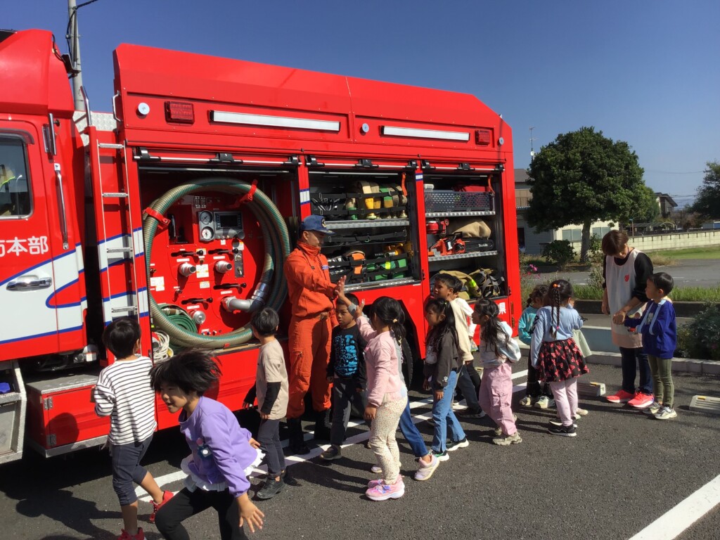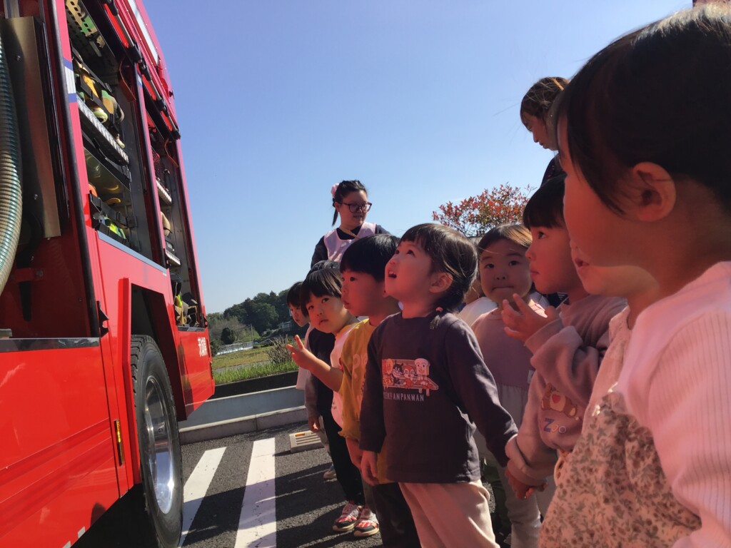 最後に消防車を見学させてもらいました🚒「これな~に?」「このまるいのは?」とたくさんの質問にも丁寧に答えてくれました😊