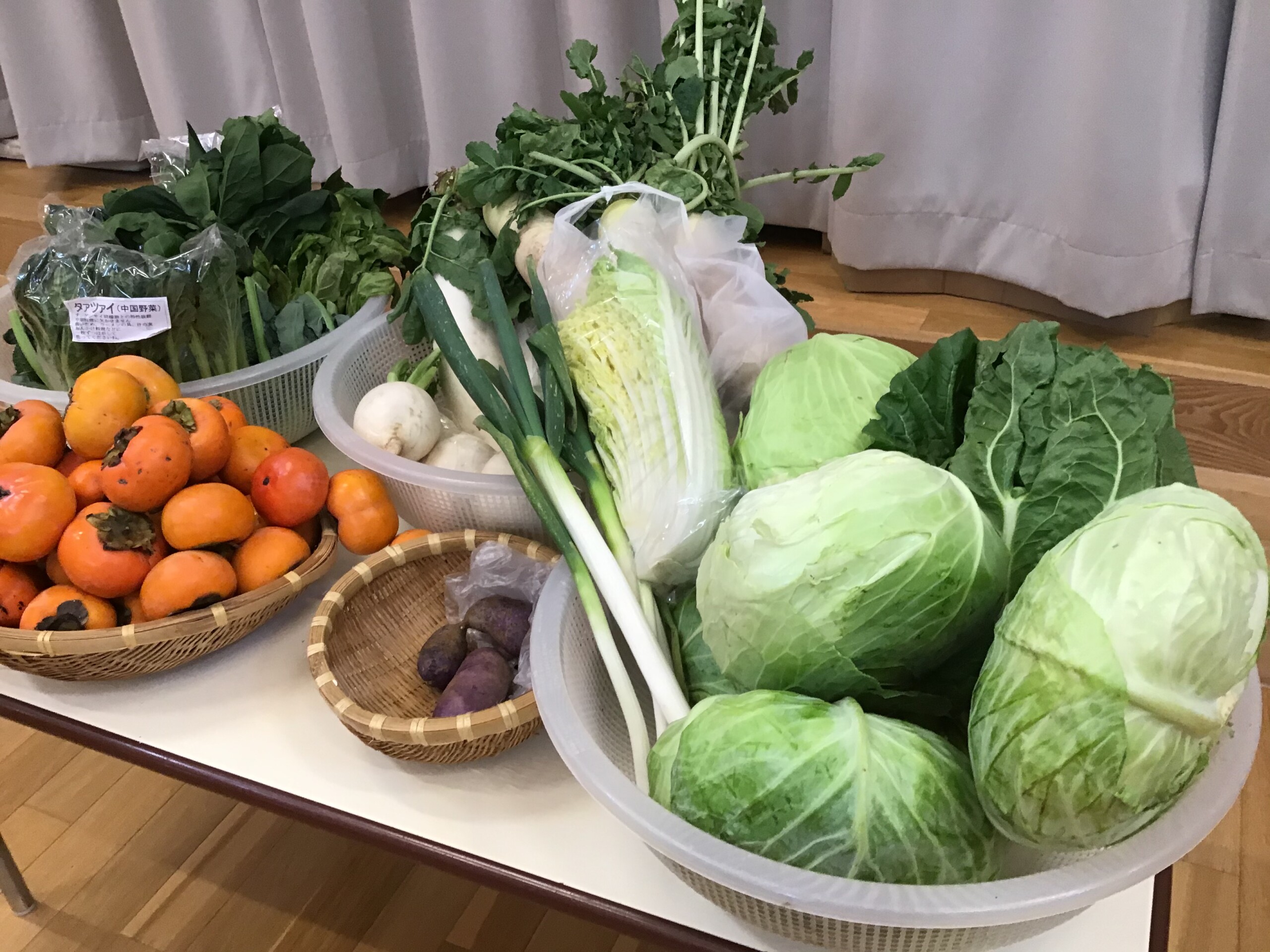 1日目は、収穫感謝祭からスタート!秋の実りとイエス様に感謝しながら、お家から持ってきて頂いたたくさんの野菜や果物について、園長先生とお話しました✨