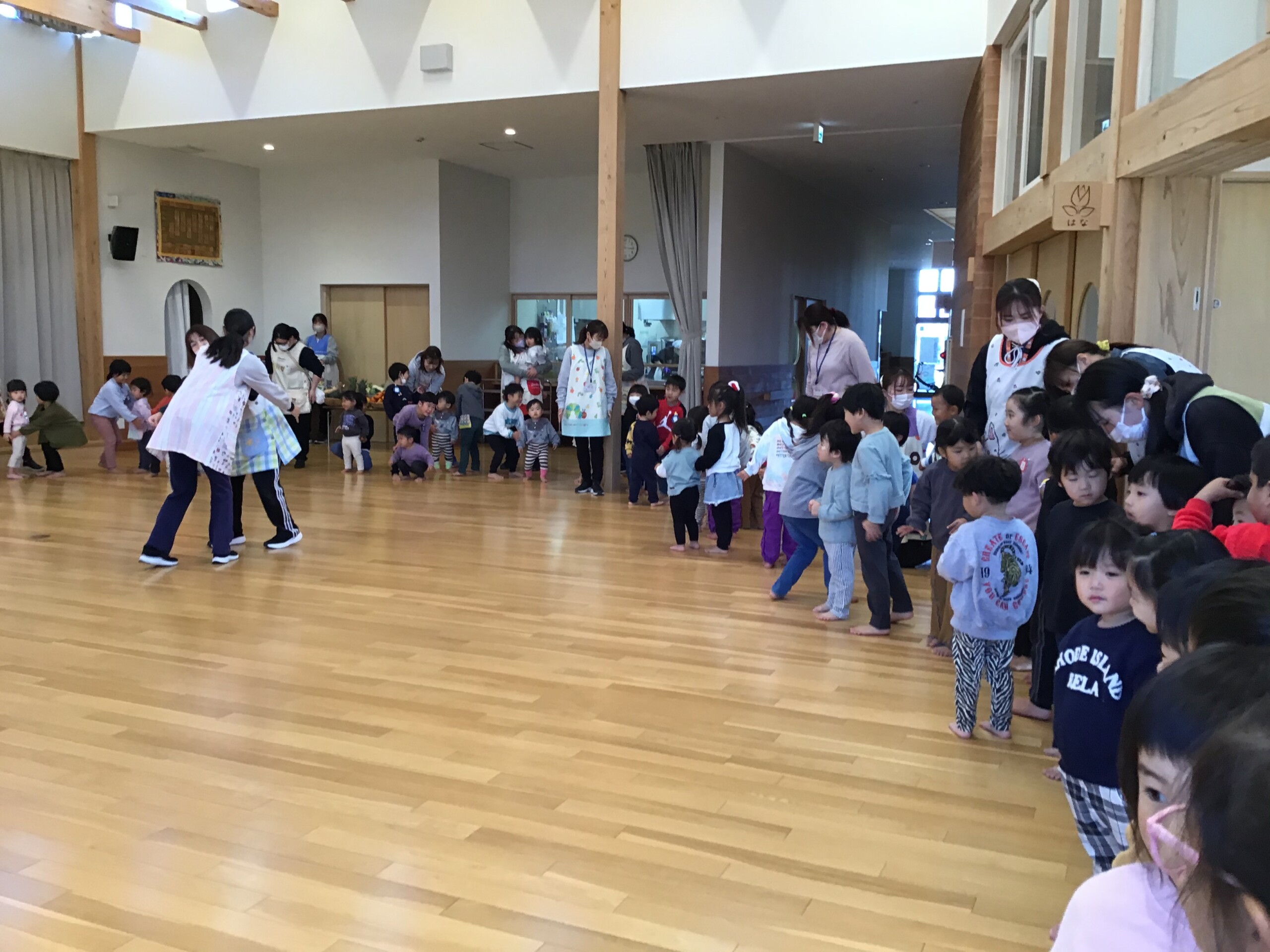 未満児さんは途中まで参加😊最後に「またね🎵」をして、残りの時間は以上児さんのみで遊びます(*^^)v