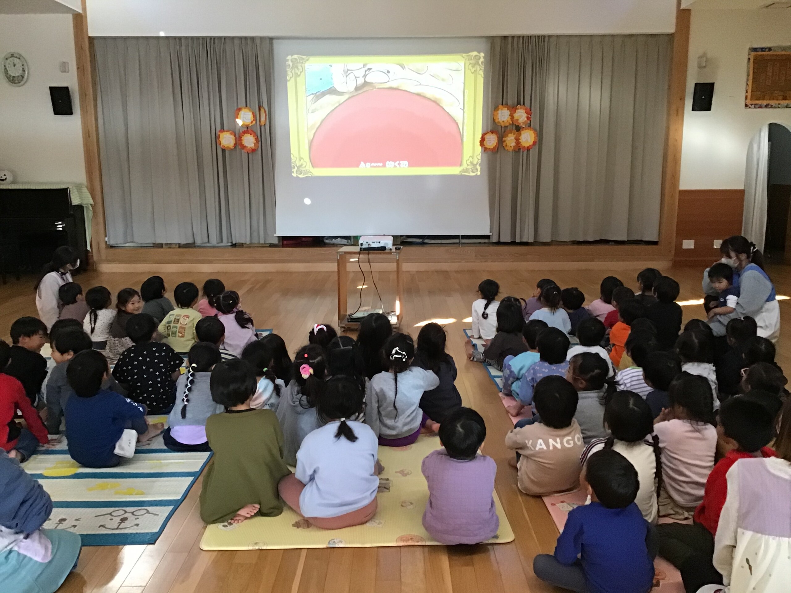 午後は、わらしべのDVD、「だいだらぼうのあしあと」を鑑賞しました👣筑波山の真ん中がへこんでいる理由はだいだらぼうがしりもちをついた跡だったんだね👀みんな楽しく見ていました✨