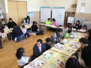 さいごにお家の人と誕生日メニューの給食です。いつもと違いお家の人に甘えたりお話を楽しんだりとお子さまにとって、特別な時間が過ごせました😊