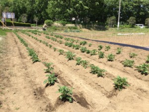 3月に星組さん、花組さんで蒔いたじゃがいも。おひさまパワーでぐんぐん生長中。まだまだ小さいちび芋ちゃんですが、きっと来月にはおいしいでぶいもちゃんが収穫できると思います。