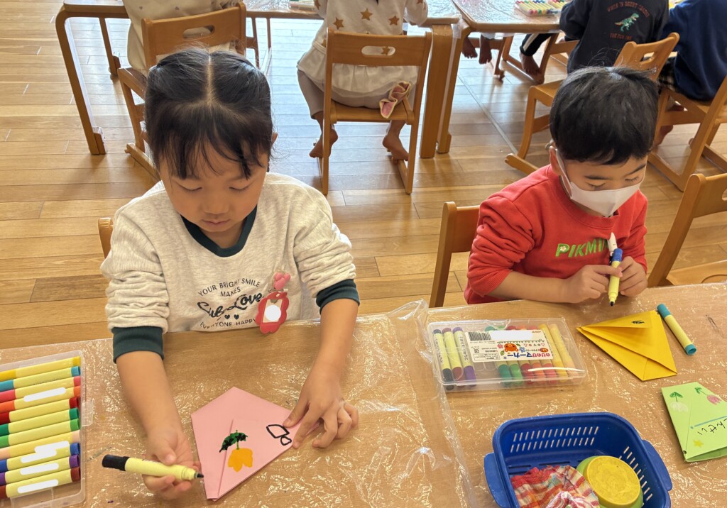 形が完成すると、名前を書いたり、好きな絵を自由に描いたりと思い思いに楽しんでいましたよ(*^^*)