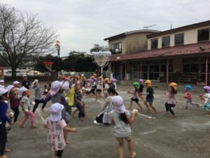 最後は、みんなでフォークダンスを行いました。運動会ごっこ楽しかったね♡