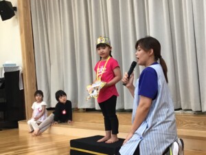 園長先生からキラキラ✨の冠と、星型のメッセージカードを頂いて自己紹介とインタビュー🎤
