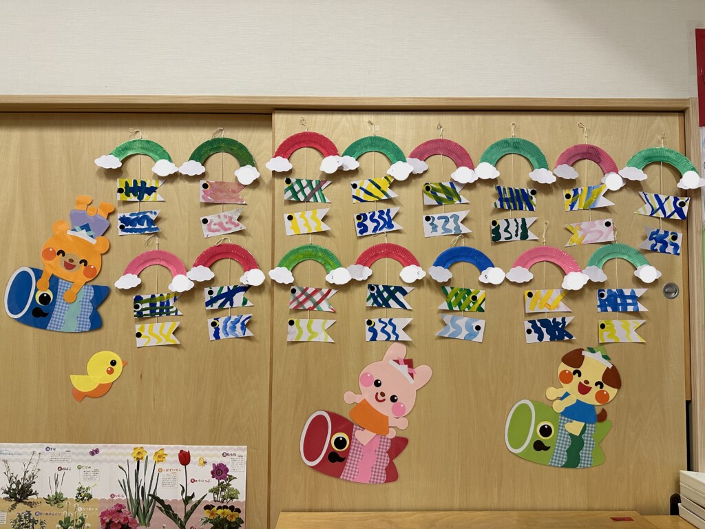こいのぼりの柄を波線にしたり、チェック柄にして模様を付けました。「難しい~」「綺麗にできない~」と苦戦していましたが・・・自分の力で最後まで作ることができ、「できたよ~」と嬉しそうな顔をしていました!(^^)!