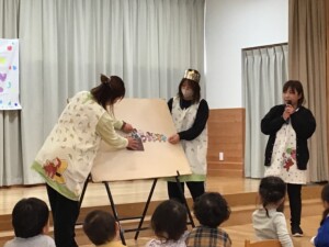 先生からのプレゼントは、パネルシアター「おおきな・・・?」みんなが知っている「おおきなかぶ」とはちょっぴり違うお話です。