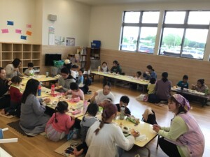 お誕生児のお友達とお家の方は一緒に親子給食。いつも食べる給食ももおいしいけれど、お家の方と食べる給食もとってもとってもおいしかったね❤