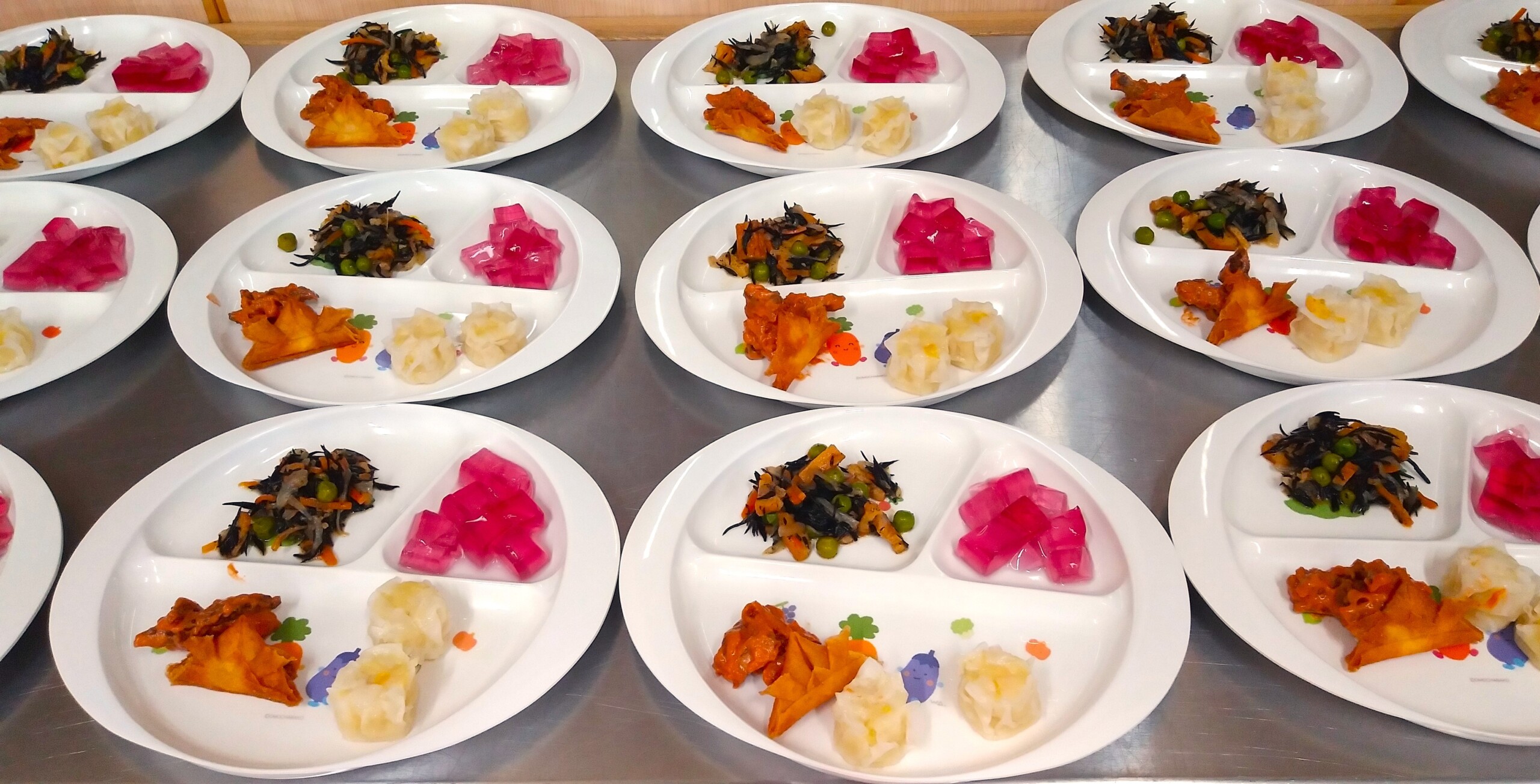 丈夫に、たくましく成長するようにと願いを込めて、給食室の先生たちが1つ1つ丁寧に春巻きの皮で「兜」を折りました(^^♪