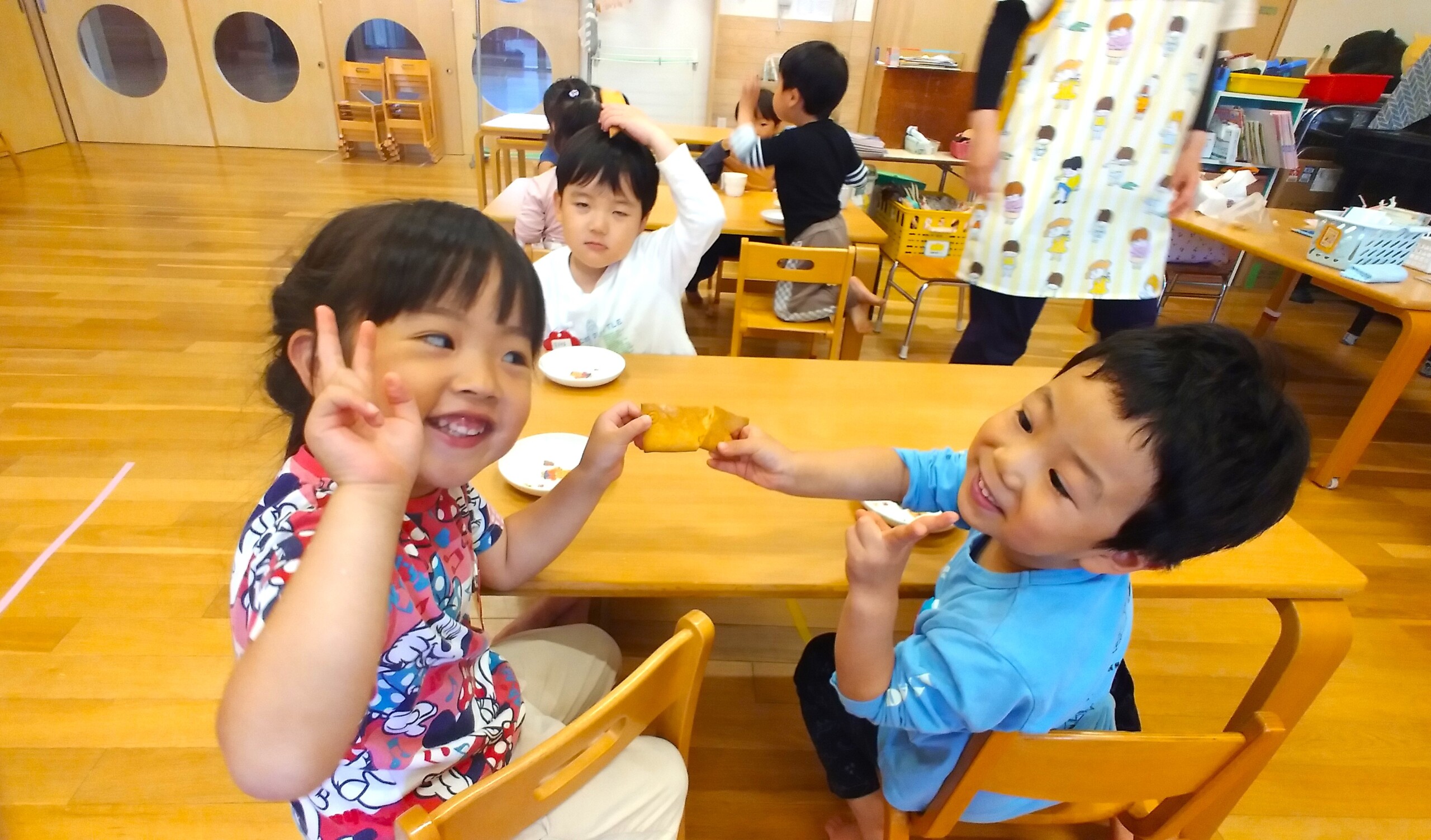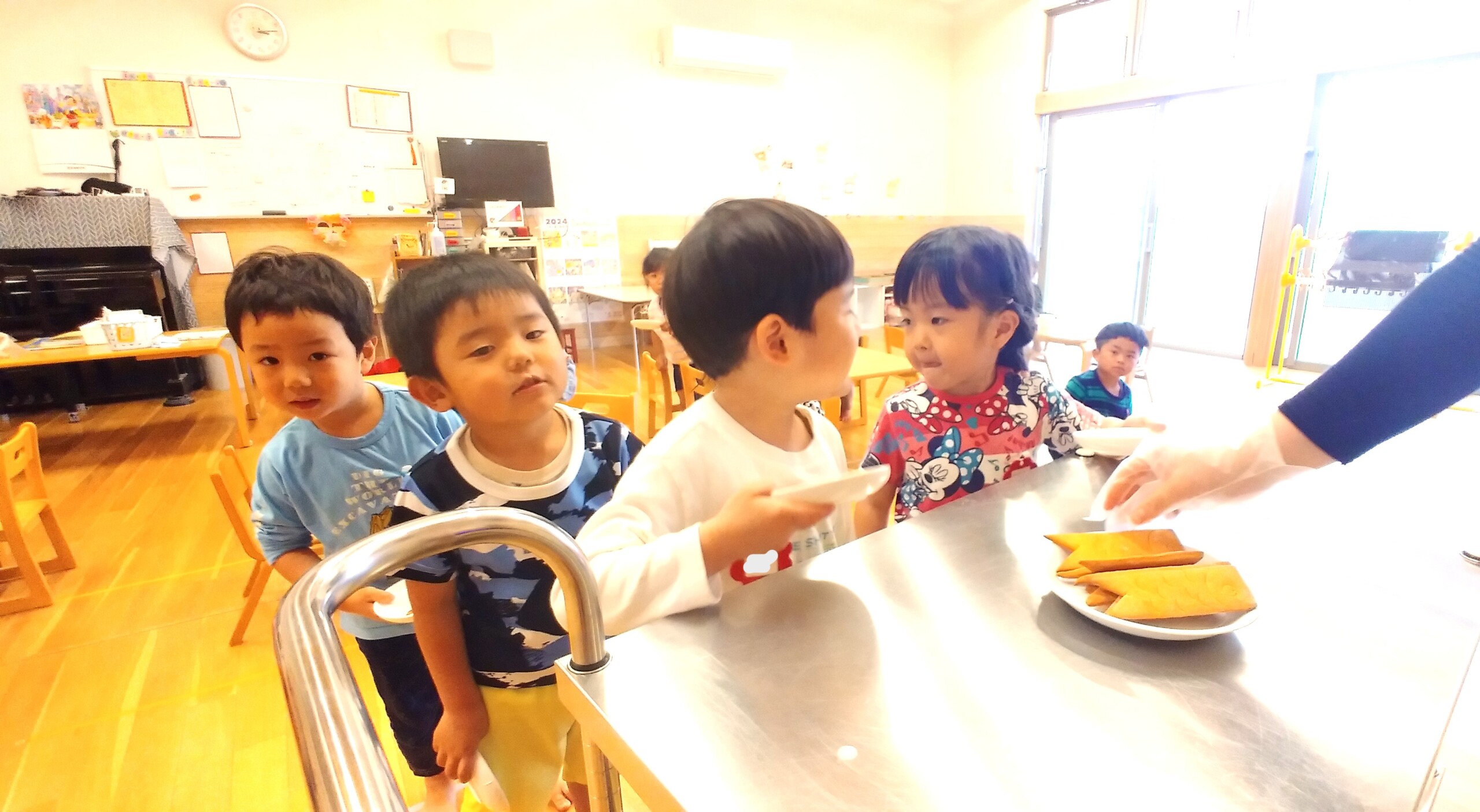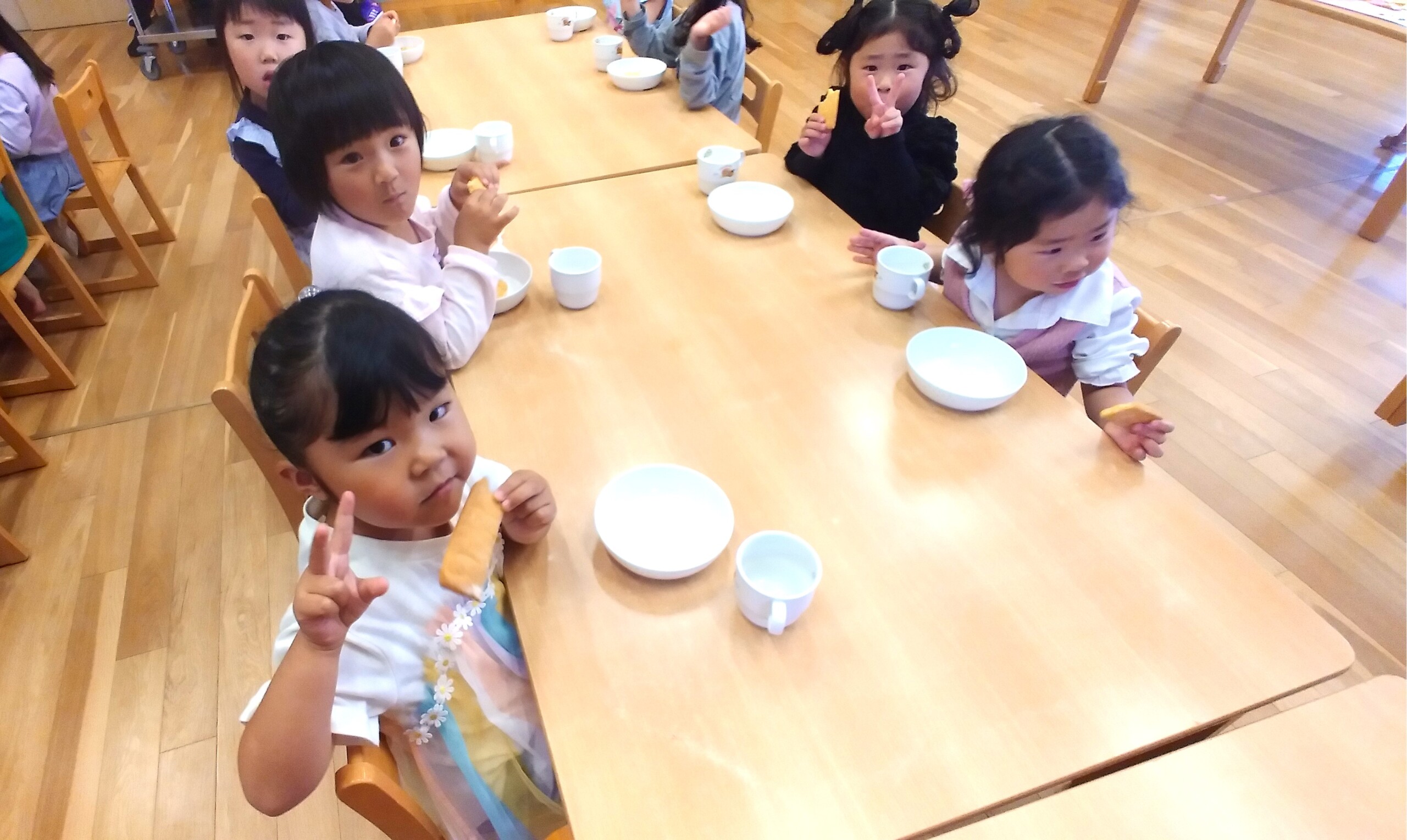 新入園の子どもたちも、ずいぶん給食に慣れてきてくれました。