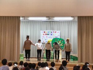 先生たちが色々な動物さんに変身して登場します。おもしろいダンスに笑ってしまったり大盛りあがりでした。