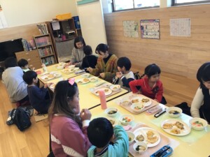 最後はお楽しみの親子給食の時間。